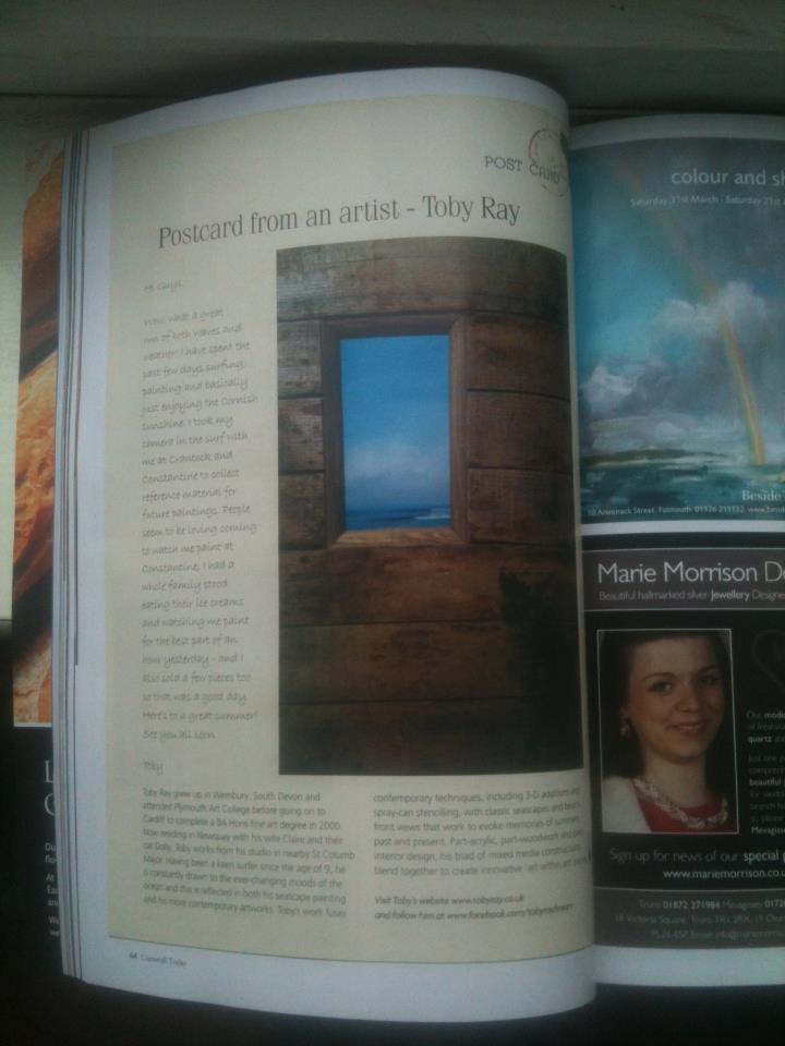 Just picked up the new April issue of Cornwall Today magazine! I have a whole page about my Artwork in the 'Postcard from an Artist' section. Hurrah!!